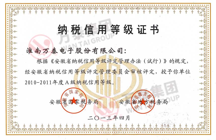 • 納稅信用等級證書